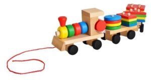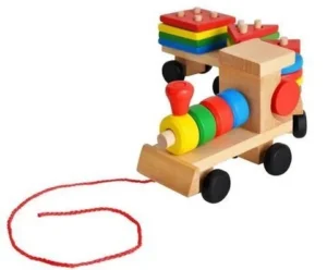 Värvikas puidust rong klotsidega, selle abil laps õpib tundma värve ja kujundeid, arendab motoorikat.